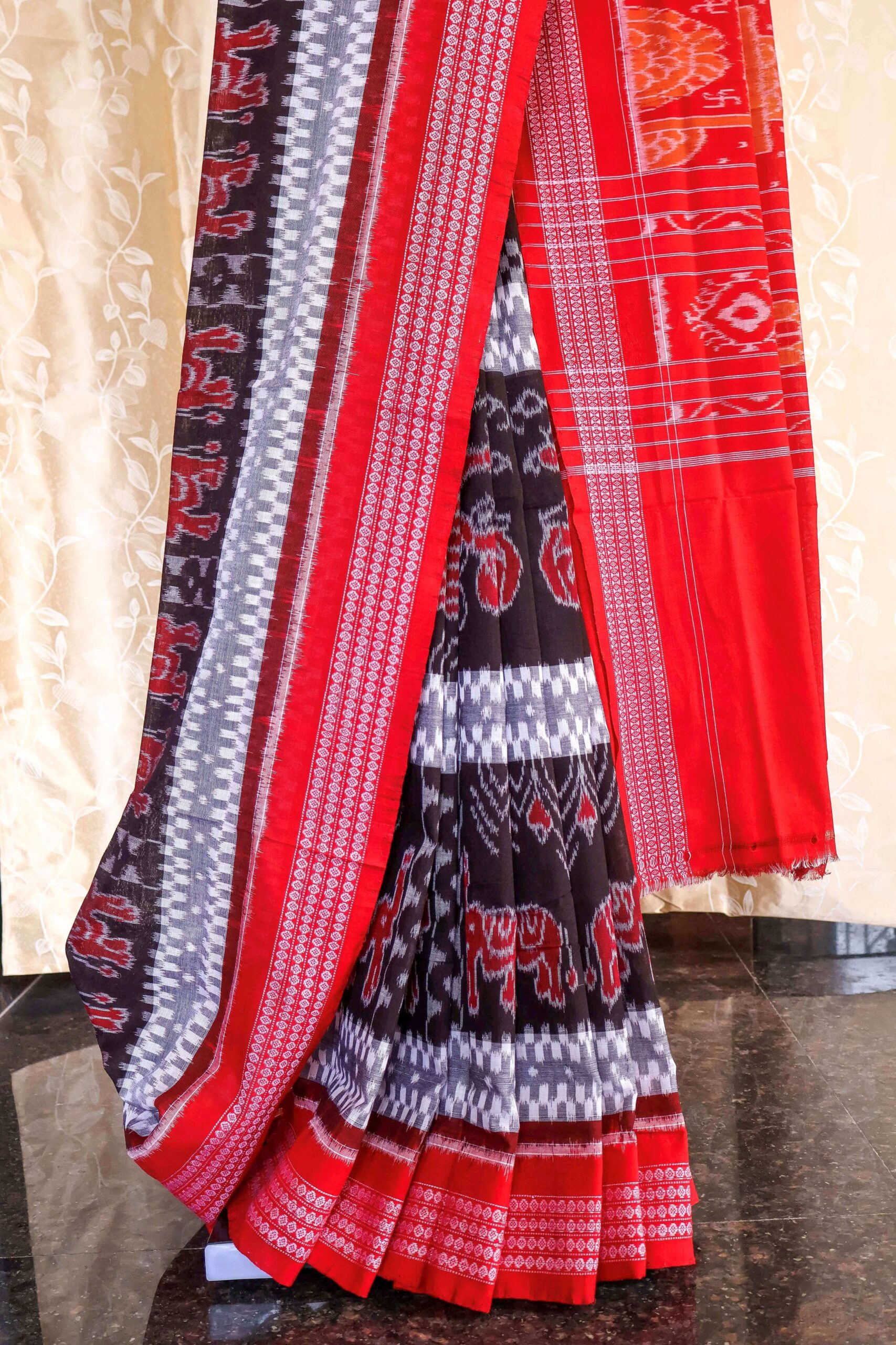 (4) Wash Care: We advise dry cleaning for the silk sarees and handwashing separately in cold water alongwith drying in shade for our cotton products. Iron Care: Light iron to be used. For pattachitra handpainted items, please iron only on backside. Otherwise use a cotton cloth on top of the painted parts while ironing.